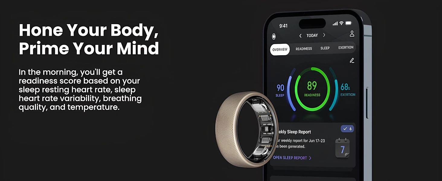 Fitness Takip Yüzüğü, Abonelik Gerektirmez, Uyku, Kalp Atış Hızı ve Stresi İzler, Titanyum Alaşımlı, Hızlı 1,4 Saat Şarj, Yüzme/Duşta Suya Dayanıklı