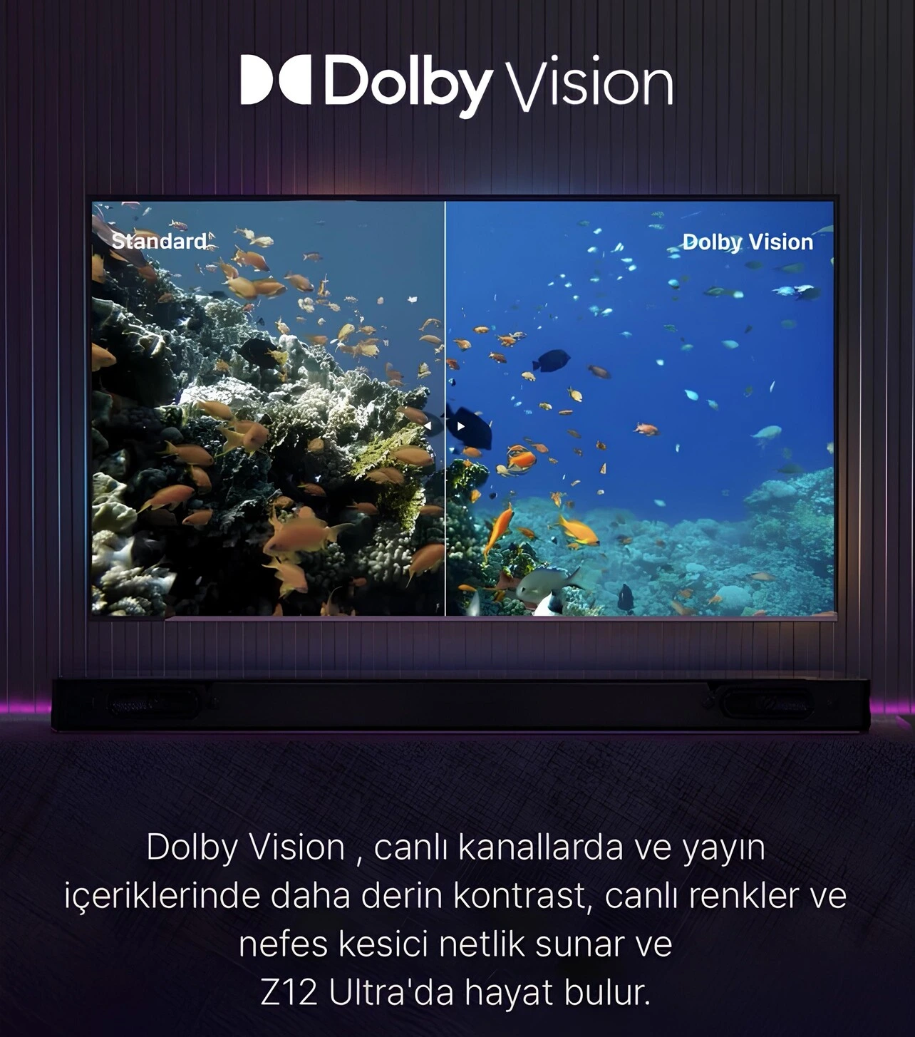 • Dolby Vision ve Dolby Atmos. Ultra canlı renkler, daha derin kontrast ve sizi aksiyonun tam ortasına yerleştiren sürükleyici 3D surround ses ile sinematik 4K oynatmanın keyfini çıkarın.