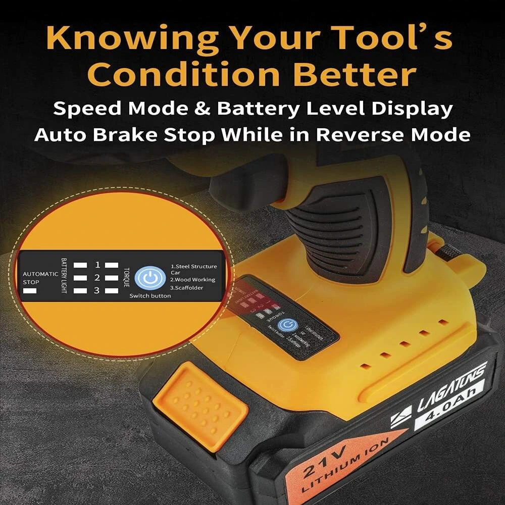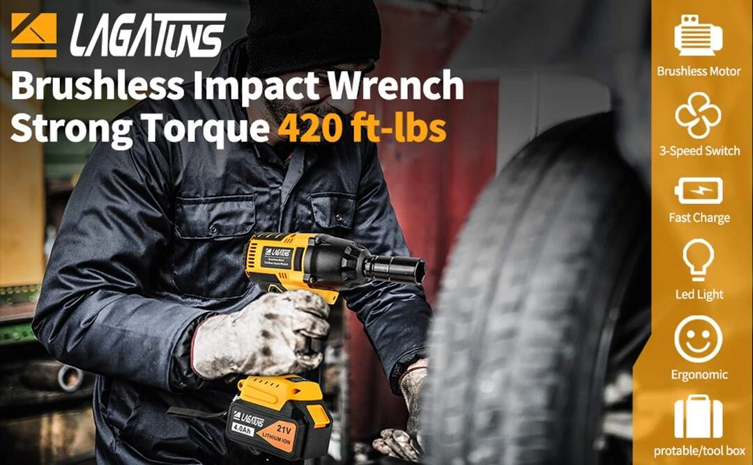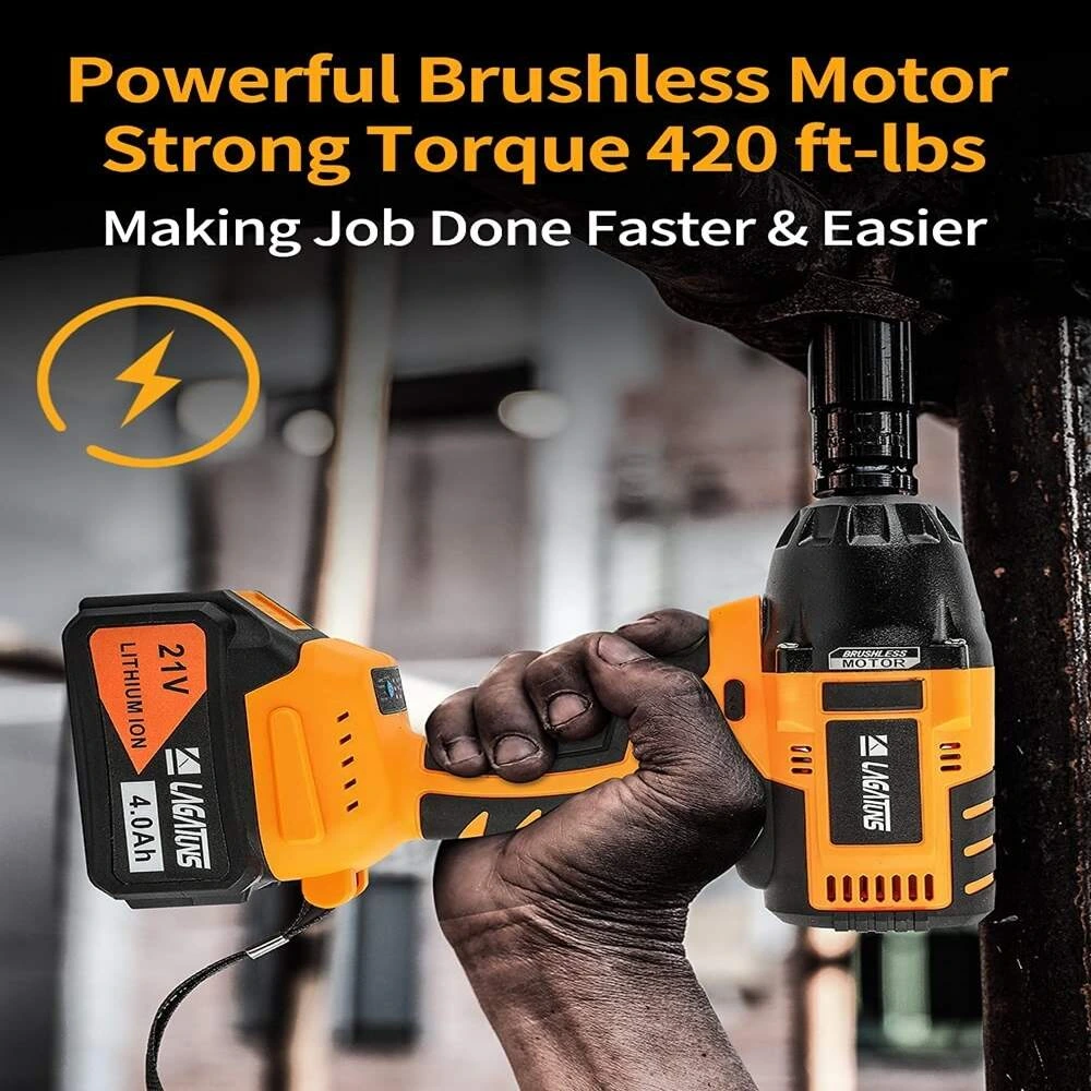 Akülü Darbeli Anahtar, 420 Ft-lb Yüksek Tork 3200 RPM, 21V 4.0Ah Li-Ion Pil ile, Hızlı Şarj Cihazı, 6 Soket, Aile arabalarına uygundur