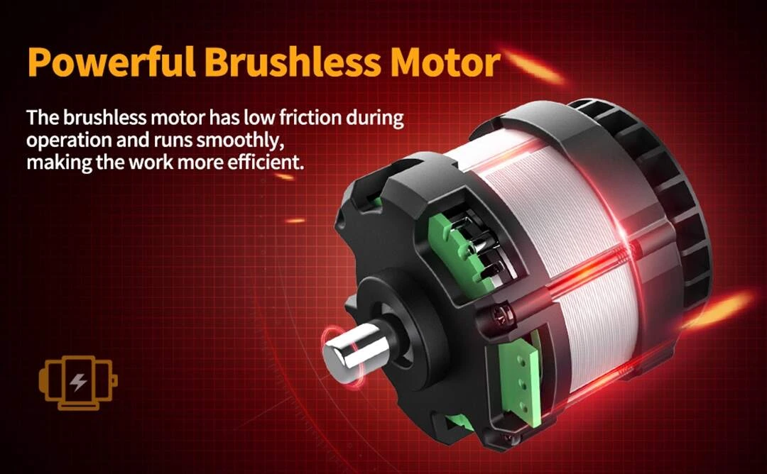 2.【Fırçasız Motor】:Geleneksel karbon fırça motoruyla karşılaştırıldığında, fırçasız 1/2 darbeli tabancamız size daha iyi bir çalışma deneyimi sunacaktır. fırçasız motor daha uzun kullanım ömrüne sahiptir, Daha güçlü motivasyon, daha az pil enerjisi kaybı, daha düşük makine çalışma gürültü seviyesi ve çok daha güvenli çalışma koşulları.