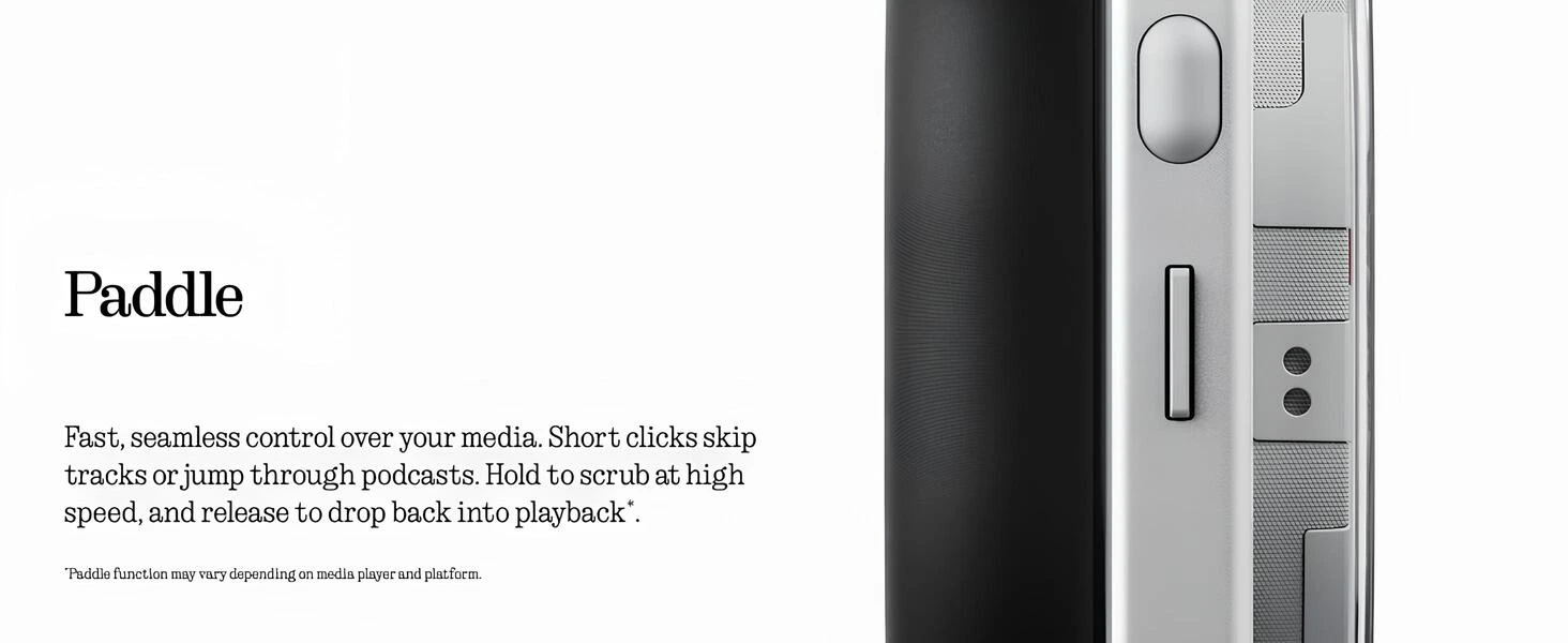 Kısa tıklamalarla şarkı atlayabilir veya podcast içinde ileri gidebilirsiniz. Basılı tuttuğunuzda yüksek hızda sarma yapabilir, bıraktığınızda normal oynatmaya geri dönebilirsiniz. Bu kontrol sistemi, medyayı kesintisiz yönetmenizi sağlar.