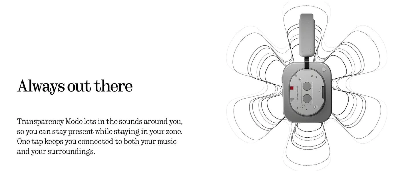 Şeffaflık Modu, çevrendeki sesleri içeri alarak müzik dinlerken ortam farkındalığını korumana yardımcı olur. Tek dokunuşla dış dünya ve müziğin arasında mükemmel bir denge kurar.
