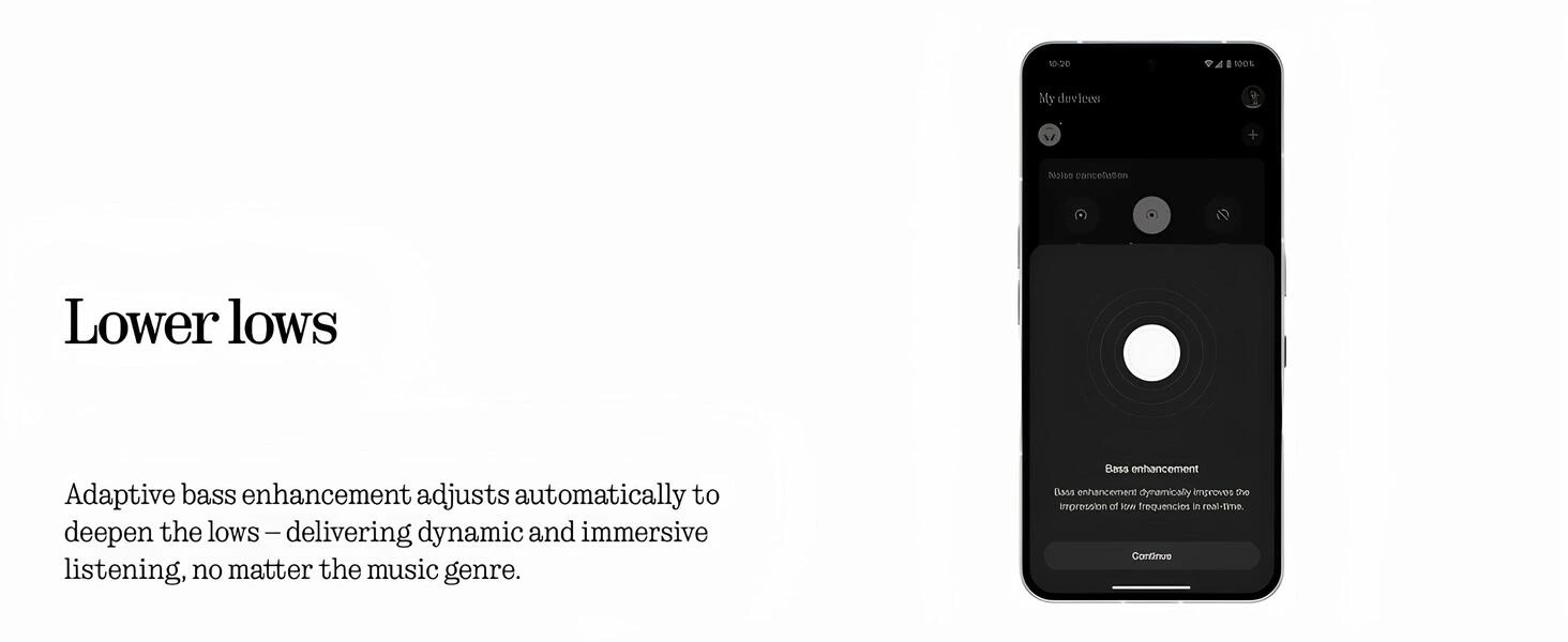 Uyarlanabilir bas geliştirme sistemi, dinlediğin müziğe göre düşük frekansları otomatik olarak derinleştirir. Her türde dinamik, güçlü ve sürükleyici bir dinleme deneyimi sunar.