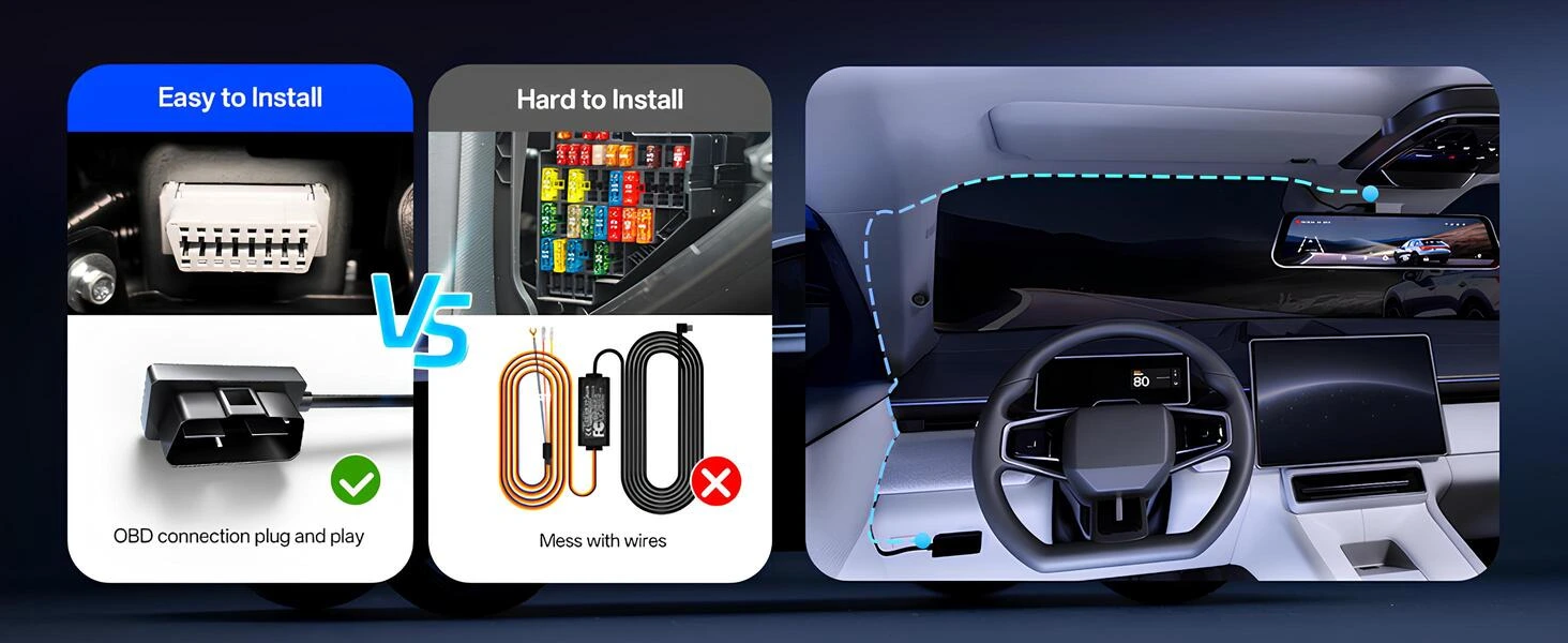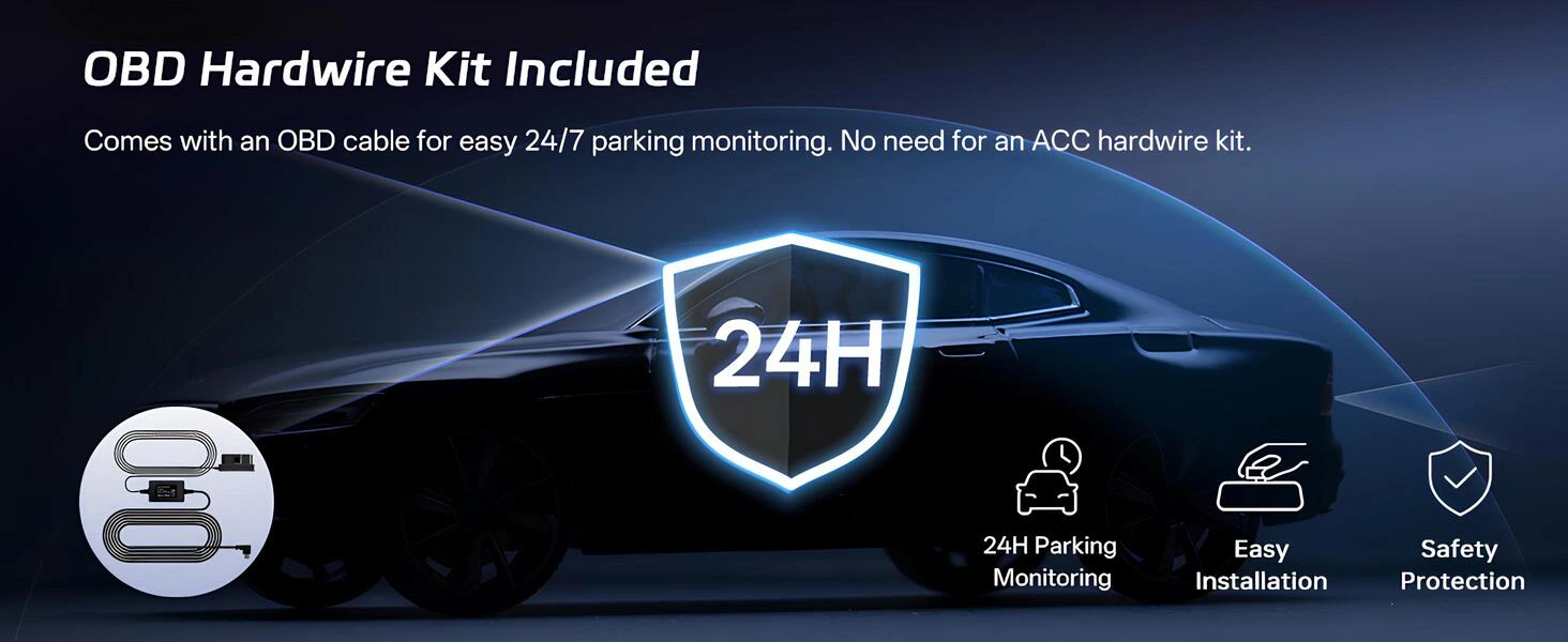 - OBD Sabit Kablolama Kiti ile 7/24 Park İzleme: Pelsee araç kamerası, park sırasında sürekli güç sağlamak için aracınızın OBD-II portuna takılan bir OBD güç kablosu içerir. Akü boşalmasını önlemek için düşük voltaj korumasına sahiptir ve aracınızın elektrik sistemini etkilemeden kolay kurulum sağlar.