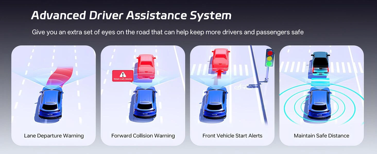 - Güvenli Sürüş için Akıllı ADAS (Gelişmiş Sürücü Destek Sistemi): Pelsee dikiz aynası araç kamerası, önden araç kalkışı, şeritten ayrılma, önden çarpışma ve yaya algılama gibi kritik yol senaryoları için sesli uyarılar sağlayan gelişmiş ADAS teknolojisiyle donatılmıştır. Gerçek zamanlı destekle farkında olun, daha hızlı tepki verin ve daha güvenli sürün.