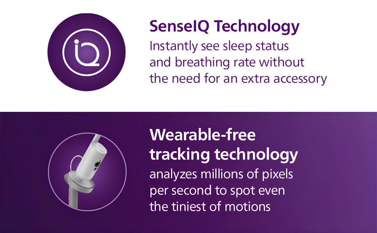 SenseIQ teknolojisi nedir?Giyilebilir cihaz gerektirmeden bebeğin nefes ve uyku hareketlerini piksel analizi ile takip eden akıllı izleme sistemidir.