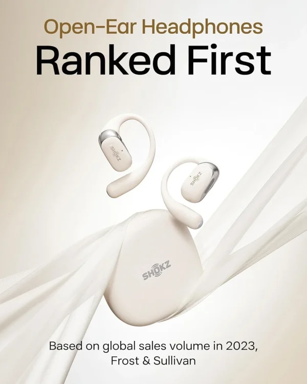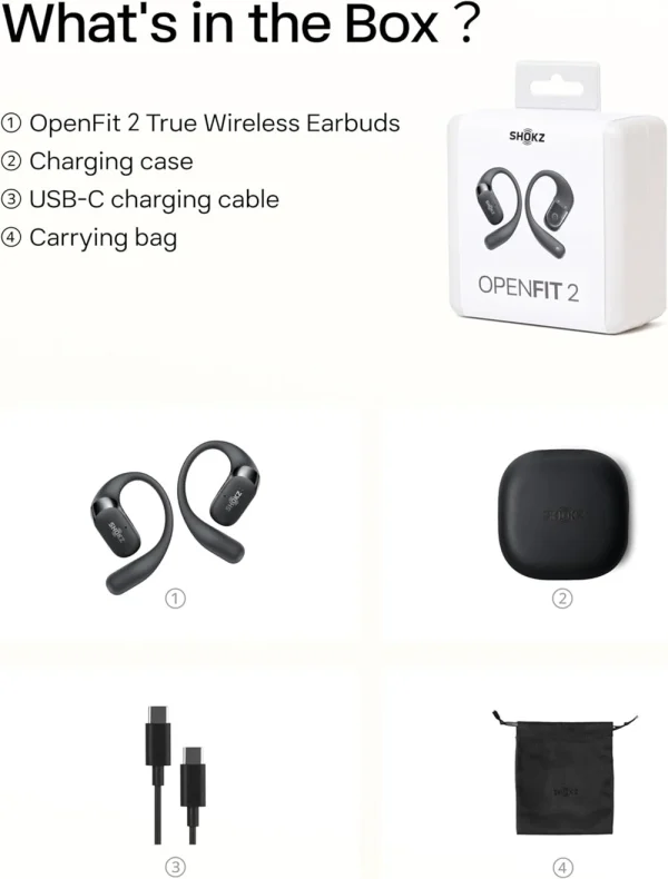 SHOKZ New OpenFit 2 Açık Kulak Kulaklık, Mikrofonlu Gerçek Kablosuz Bluetooth Kulaklık, 48 Saat Çalma Süresine Sahip Kulak Kancalı Kulaklıklar, Hızlı Şarj, IP55 Suya Dayanıklı, Taşıma Çantasıyla, Siyah -bej