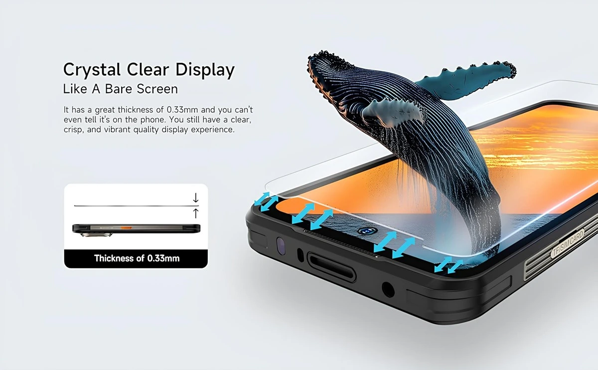 - Kristal Netliğinde Ekran: 0,33 mm’lik inceliği sayesinde telefonda olduğunu bile fark etmiyorsunuz. Yine de net, canlı ve yüksek kaliteli bir ekran deneyimi yaşıyorsunuz.