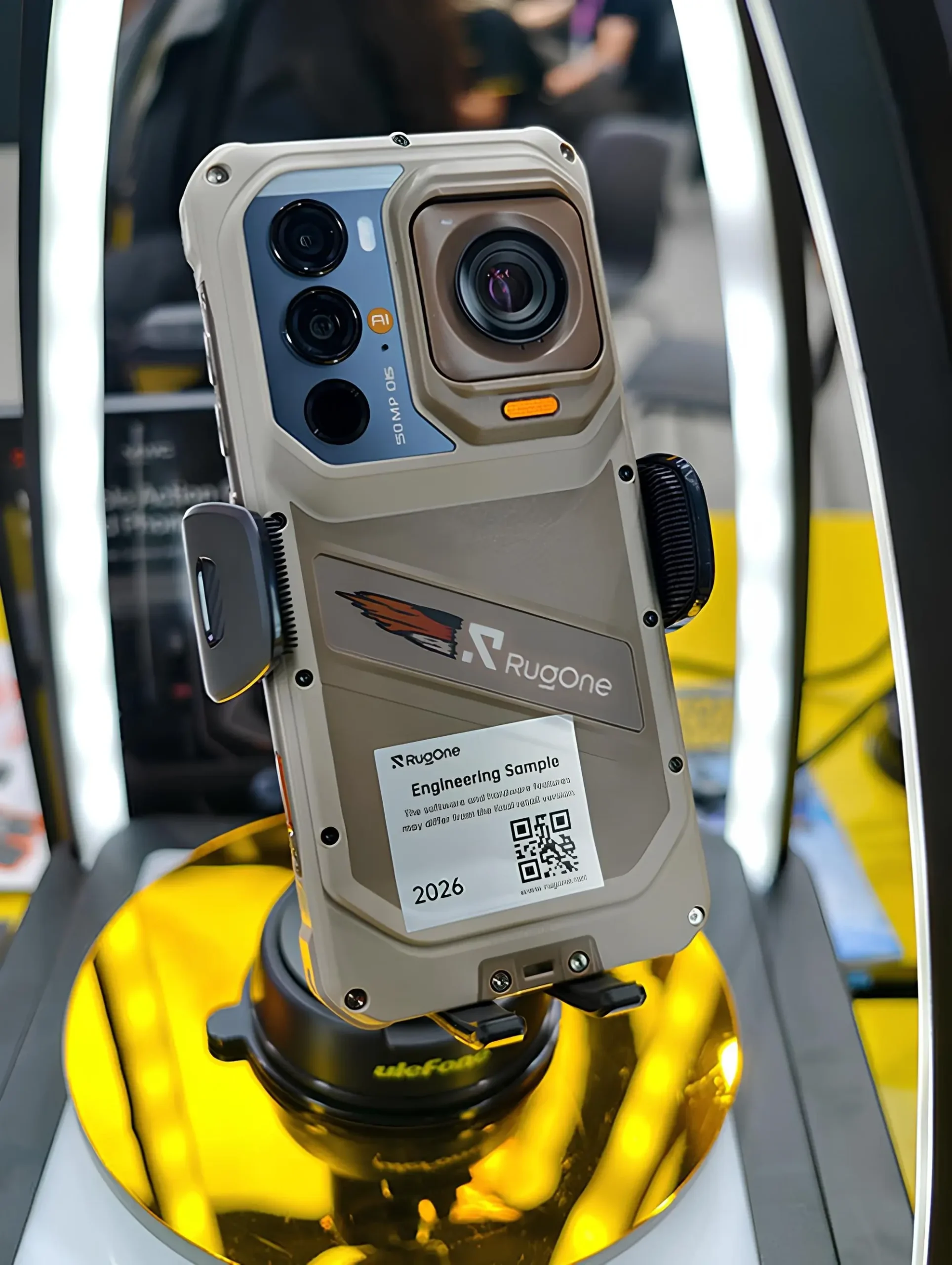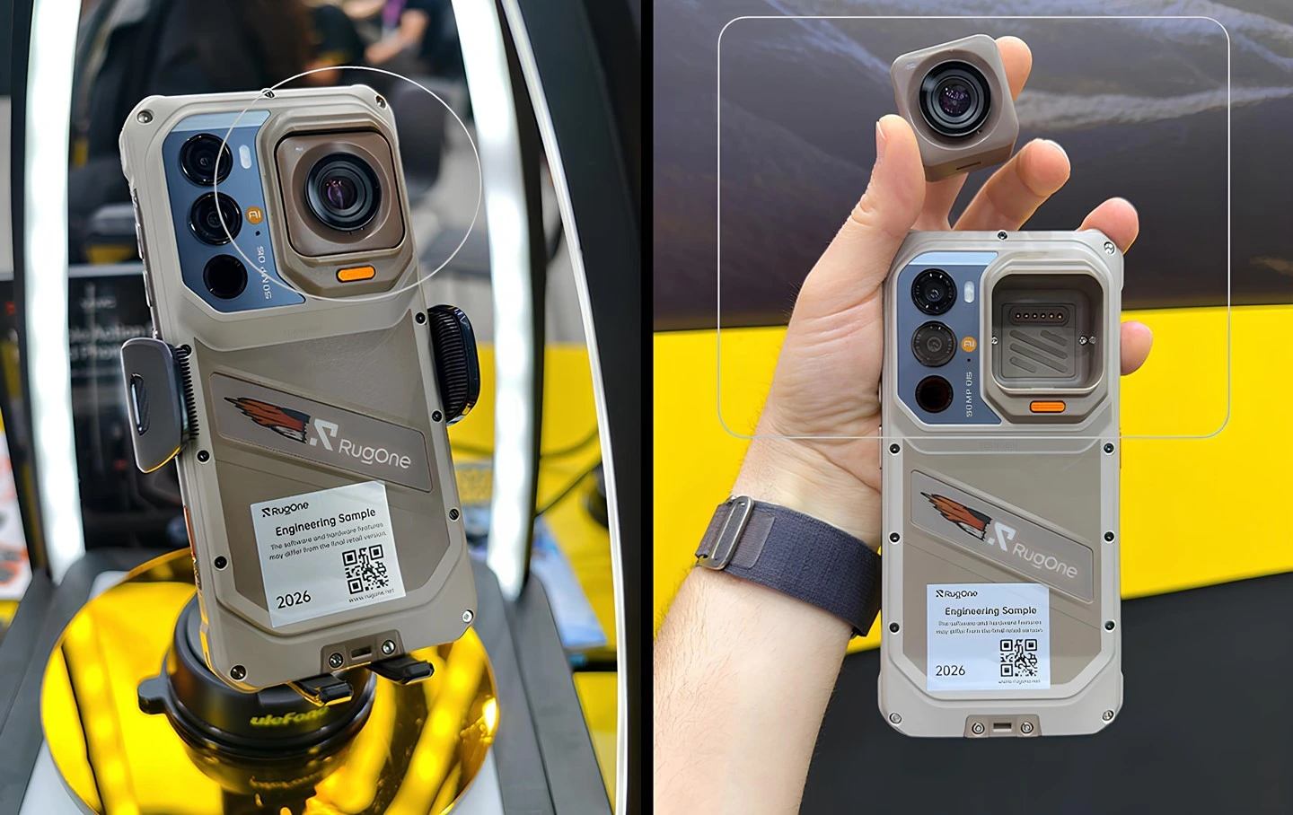 Gösterinin yıldızı, devrim niteliğindeki RugOne Xsnap 7 Pro. Bu sadece bir akıllı telefon değil; çıkarılabilir manyetik aksiyon kamerası ünitesine sahip dünyanın ilk dayanıklı cihazı